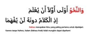 Benar sekali, nahwu adalah pelajaran pertama yang paling penting, karena tanpa nahwu, kalimat arab tidak mungkin di pahami.